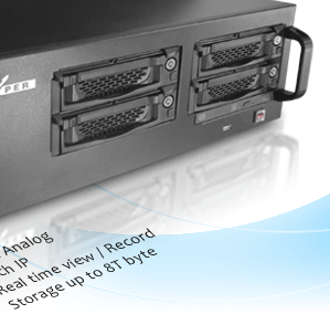 複合式DVR可同時連接傳統類比式攝影機(16CH)及網路攝影機(16CH)共32CH. |