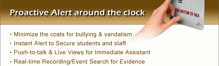Big red panic button provides push-to-talk feature for the people on-site to call for help, and the proactive alarm will help the school guard to grasp the on-site situation immediately. Most importantly, once the school guard is not at the control center, Telexper offers the customized APP to help the school guard to receive the alarm and live views remotely.
